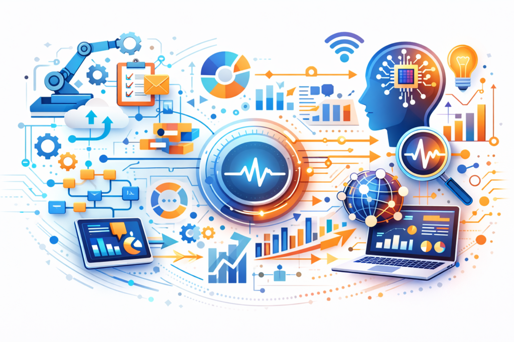 Começamos por analisar os processos atuais da empresa identificando tarefas repetitivas fluxos de trabalho manuais e oportunidades de otimização. Nesta fase definimos os objetivos da automação e avaliamos o potencial impacto da inteligência artificial nas operações.